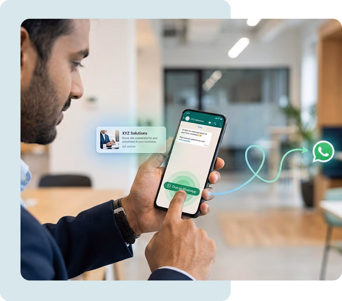 Ad click leads users directly to a WhatsApp chat, reducing drop-offs and abandonment.