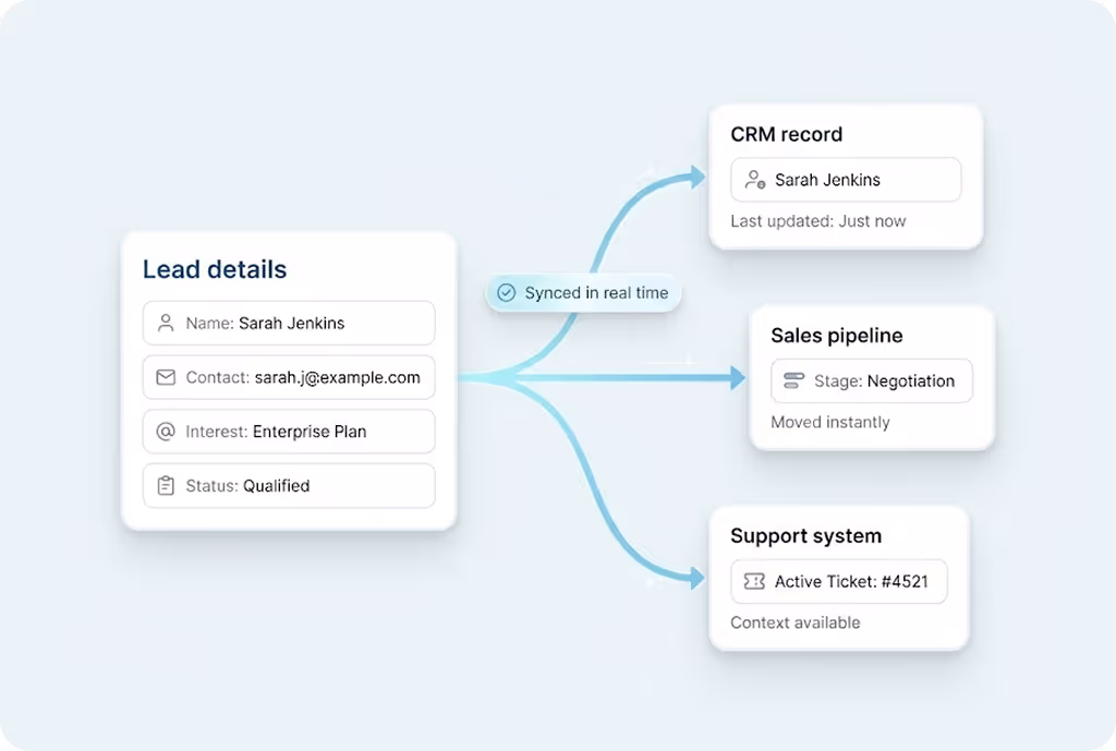 AI voicebots and chatbots that handle first response, qualification, and routing.