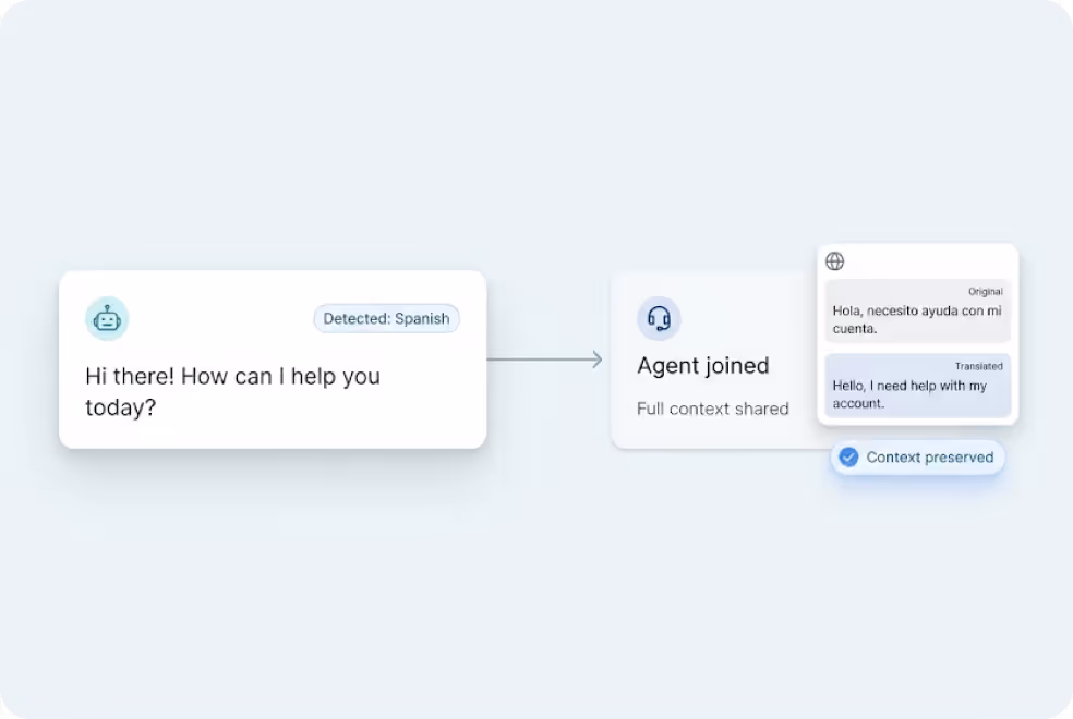 Sales and support teams step in with complete conversation context.